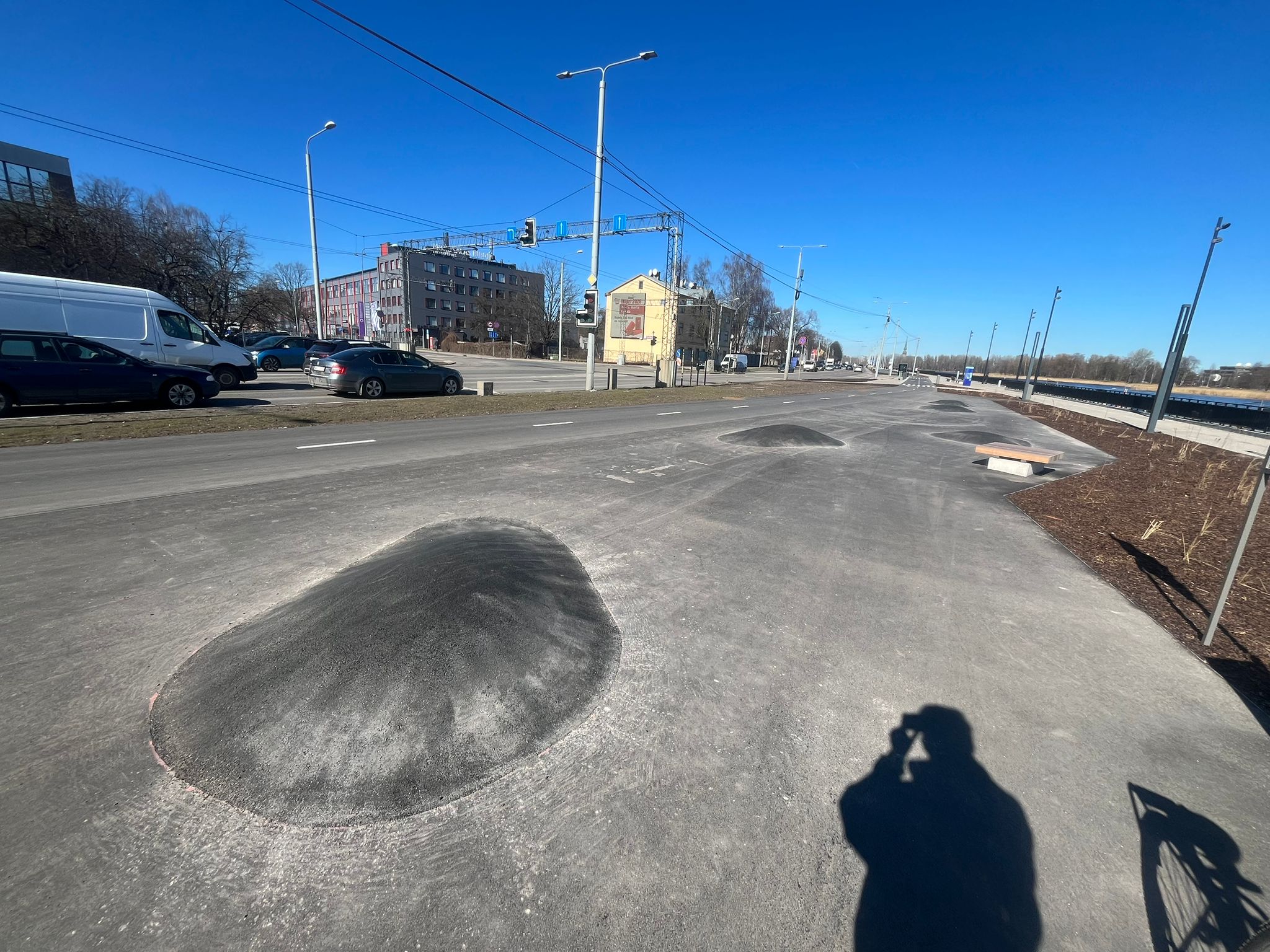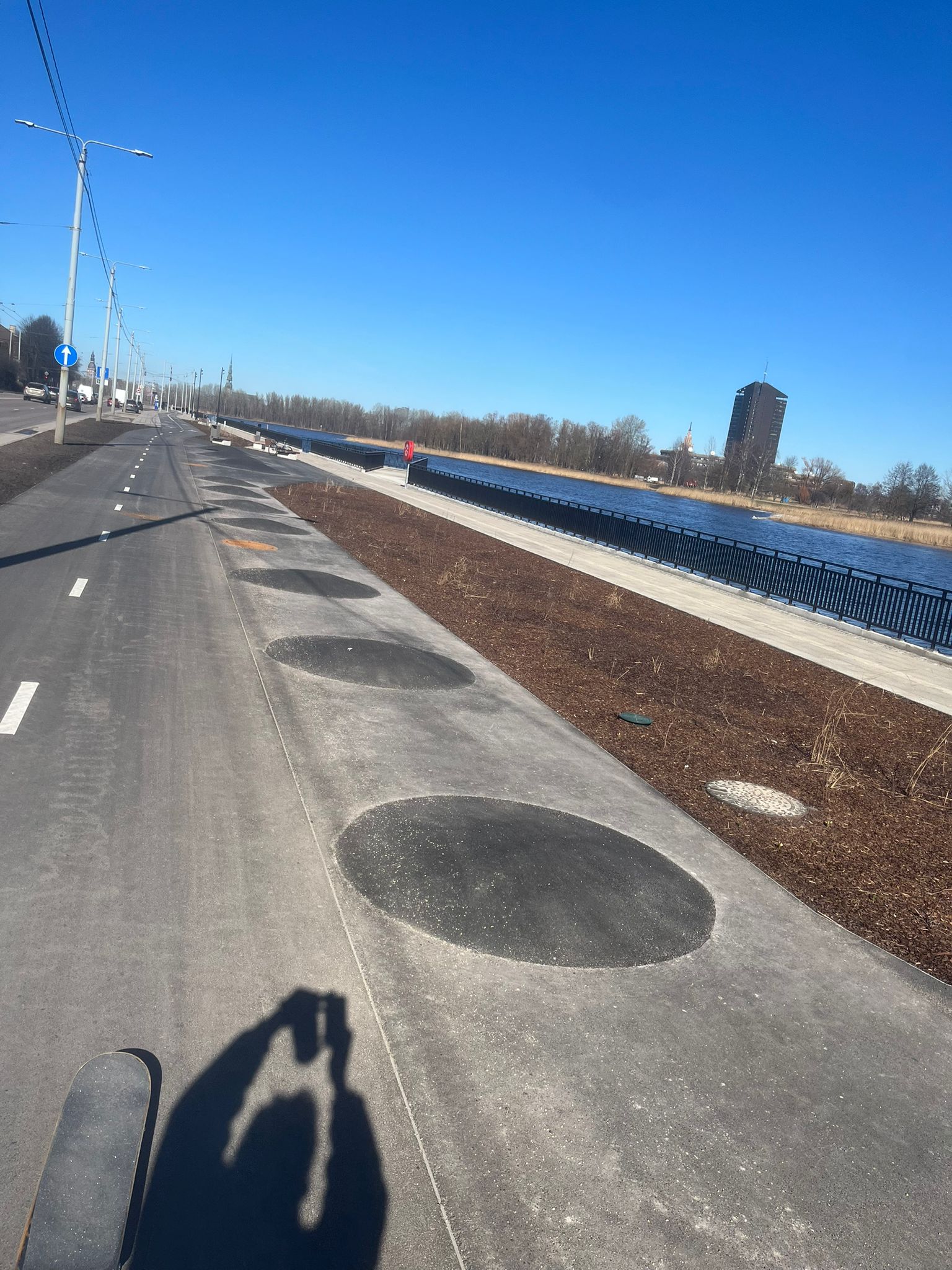 From a skateboarders’ perspective, a reconstruction is a sign of new spot potential. Last year, we were already eyeing the part of the promenade across the road from LNB: a new extension into Daugava which promised some actual skateable terrain. Then the visualizations for the project showed something that looked like a skatepark. It is admirable that the city includes skateboarding and other riding pleasures in its planning.