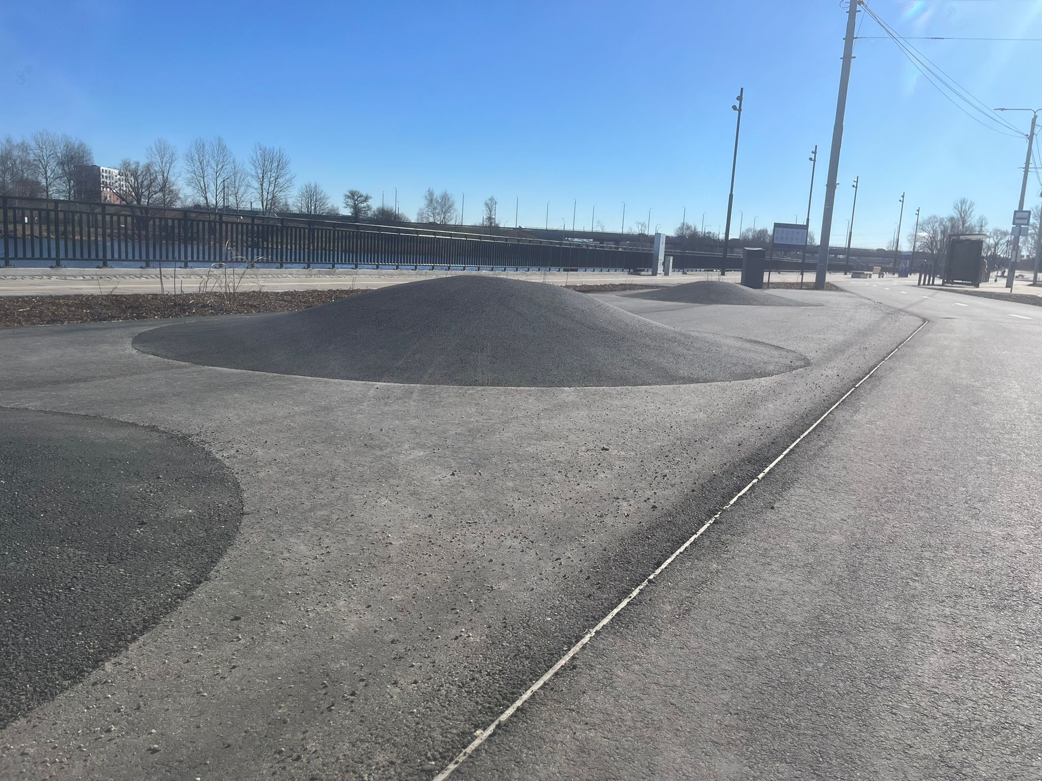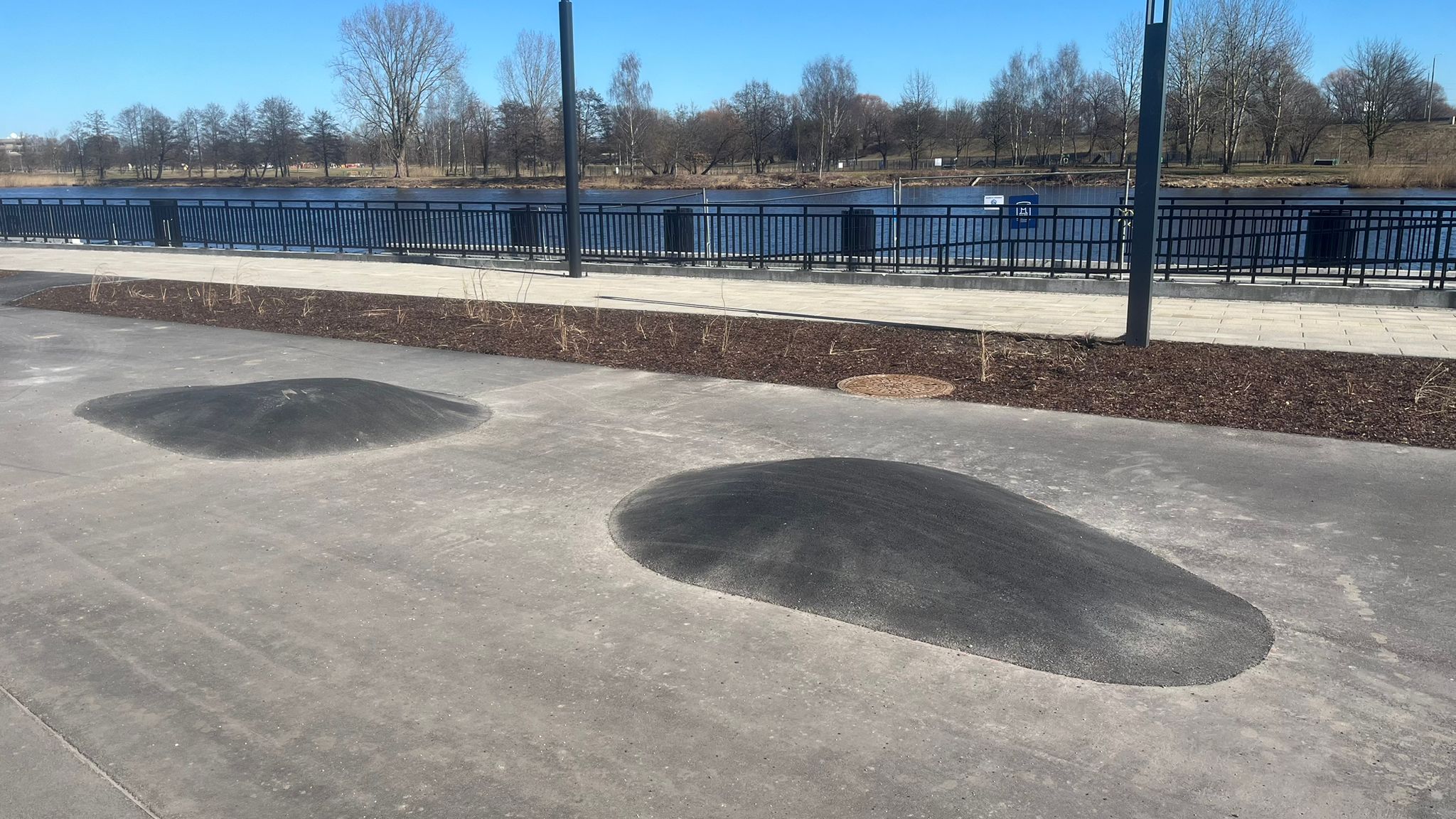 Spring came and the promenade opened for the public to enjoy. Some friends have been there and told that instead of a skatepark there are some asphalt rideable “bumps”.